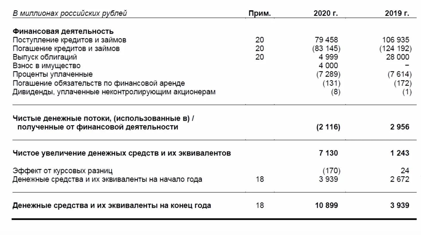 Здесь отражают привлечение денег и выплаты по внешнему финансированию.