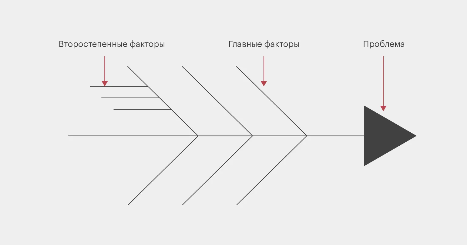 Диаграмма Исикавы («рыбьи кости») — метод для поиска и визуализации причин, которые приводят к проблеме. Диаграмма представляет собой схему, похожую на скелет рыбы. В «голову» помещают проблему, а на «костях» пишут факторы, влияющие на ситуацию.
