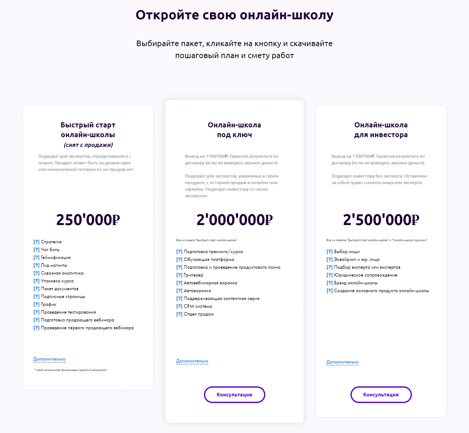 Пример прайс-листа компании, которая предлагает запустить онлайн-школу под ключ