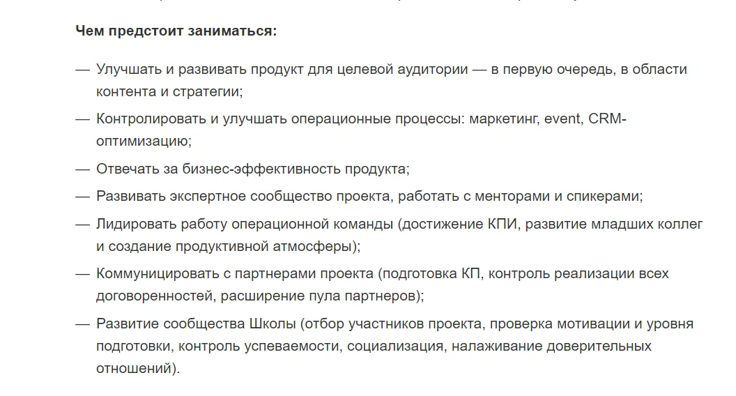 Пример обязанностей руководителя образовательных проектов из реальной вакансии