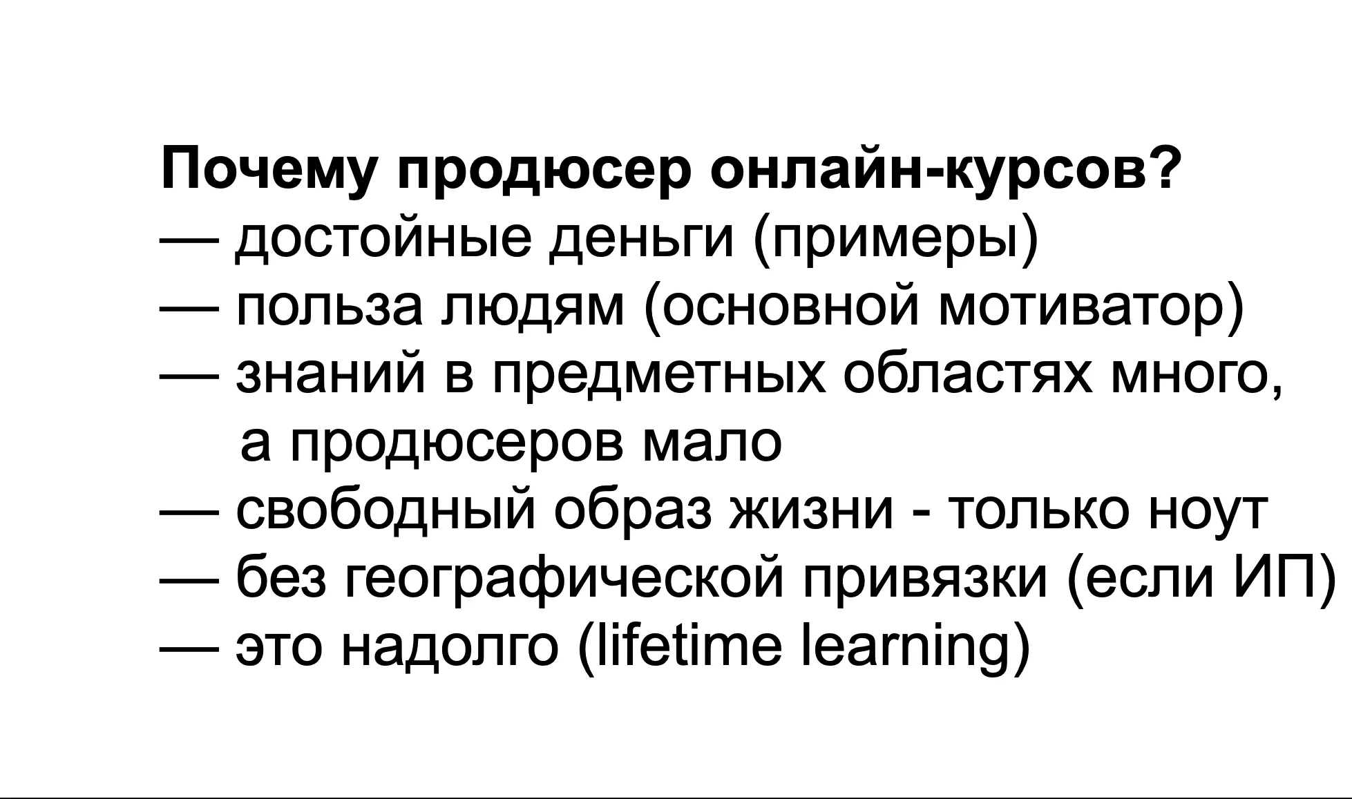 — К тому, что однажды все мои роли соединились в одной точке — профессии продюсера в сфере онлайн-образования. Я понял, что разноплановый опыт — моё преимущество. Хороший продюсер должен быть гибридом: одновременно предпринимателем и маркетологом, методистом и переговорщиком, продавцом и рассказчиком.