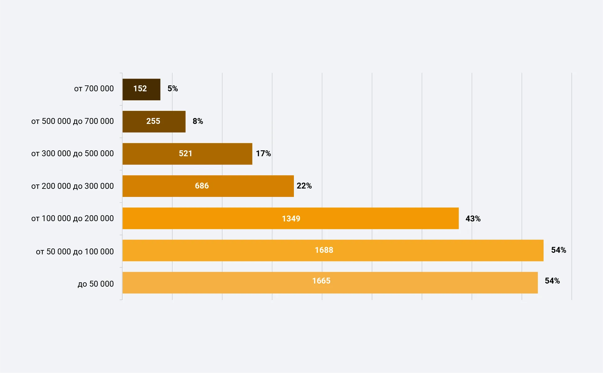 Заработок зависит от стоимости проектов. Начинающие студии (обычно те, что внизу рейтингов) зарабатывают примерно 60 тысяч рублей за проект. Потом заказов становится больше, цены повышаются и доход растёт. Опытная веб-студия с именем может делать проекты по 600–900 тысяч рублей и больше.