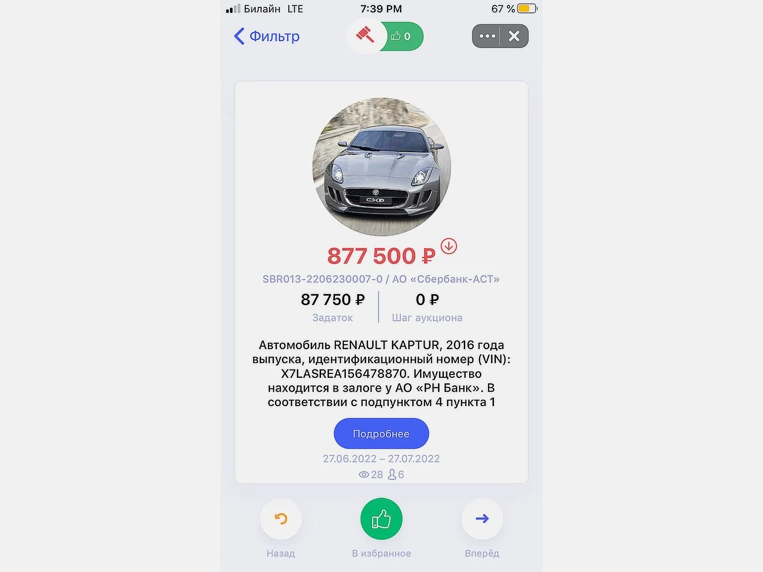 - Торги по банкротству. Здесь можно приобрести недвижимость, транспорт или спецоборудование по цене ниже рыночной. Приложение собирает данные о лотах со всех площадок Российской Федерации.